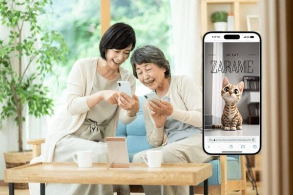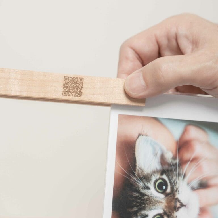 写真立てがなくても、付属のカード(QRコード付き)でダウンロード、簡単に家族や友人と共有できます。